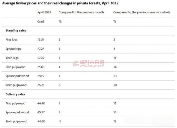 纸浆木材的立木销售价格创历史新高。上一次云杉的实际平均价格达此水平是在2008年。自1990年代后期以来,松木和桦木的价格从未达到这个水平。